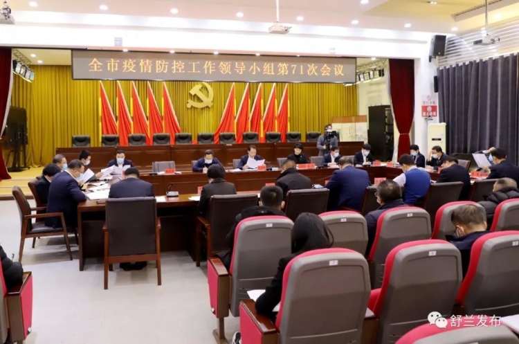 1月10日,舒兰市召开疫情防控工作领导小组第71次会议,传达学习近期省和吉林市疫情防控工作领导小组会议精神,听取全市近期疫情防控、冬春季常态化疫情防控监督检查等情况汇报,分析研判近期国内本土疫情防控风险漏洞,就做好全市疫情防控工作进行强调部署。吉林市副市长、舒兰市委书记张静辉出席会议并讲话。市委副书记、市长金华主持会议。